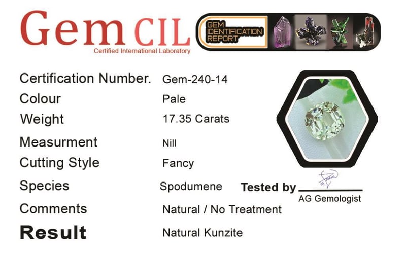 7.20 CARATS NATURAL QUALITY KUNZITE 7.20 Carats Natural Quality Kunzite Stone = Natural KunziteWeight = 7.20 Carats Colour = PaleCut = Fancy Lustre = ExcellentNote = Gem Cil, Certified, Precise Custom Cut (Not Commercial) Condition: Good - Refer Images 0488572+14