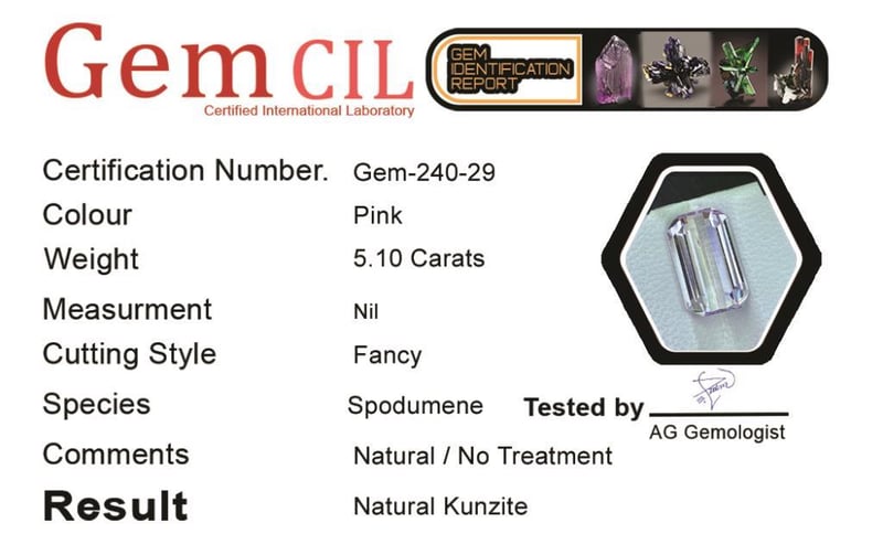4.70 CARATS NATURAL KUNZITE 4.70 Carats Natural Kunzite Stone = Natural KunziteWeight = 4.70 Carats Colour = YellowCut = Fancy Lustre = ExcellentNote = Gem Cil, Certified, Precise Custom Cut (Not Commercial) Condition: Good - Refer Images 0488572+29