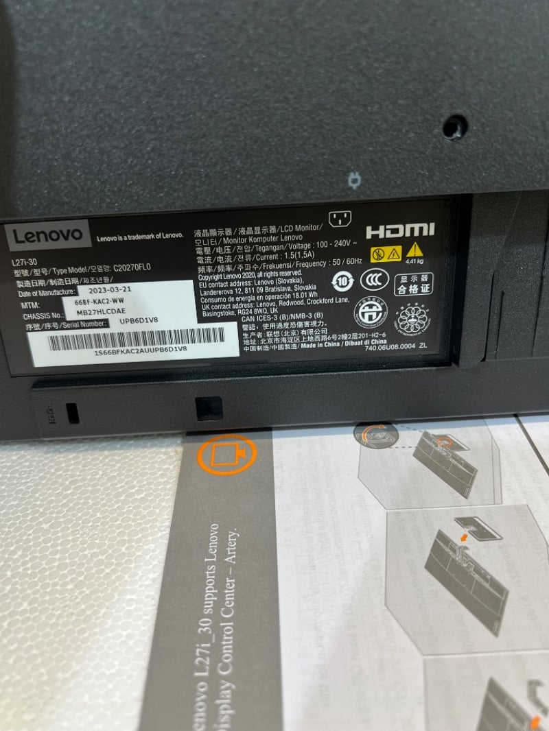Monitor, Lenovo, L27i_30, 27” screen, not tested