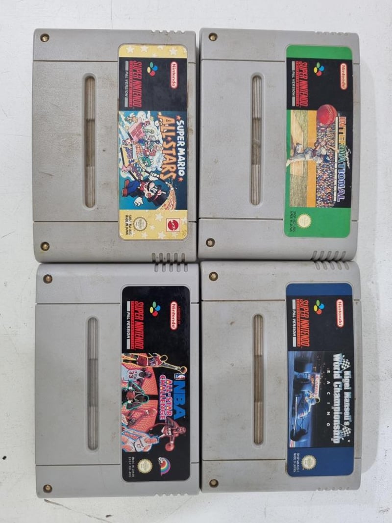 gaming console, Nintendo, SNES, includes; games, controllers, cables