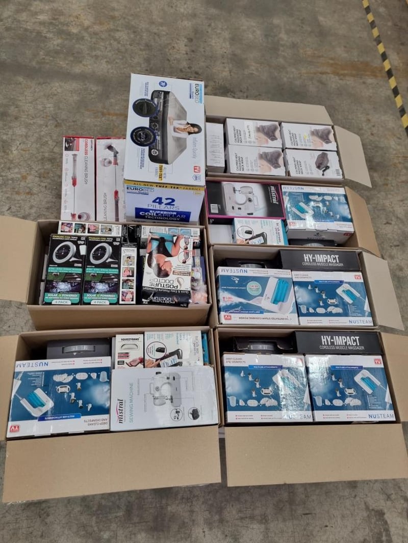 Assorted Bundle of Tech, Appliances and Homewares Includes: Germanica Cordless Cleaning Brush (gcb3r) Eurobed Luxury Queen Motorized Pump Self Inflatable Bed Calming Heat Massaging Neck Wrap Mistral Sewing Machine (msem508w) (white) Nusteam Concentrated Steam Cleaning Power Hand-held Steamer Touch Screen Purse Deluxe Mistral Robovac Robot Vacuum Cleaner (mrvac500w) Hy-impact Cordless Muscle Massager Mighty Sight Led Magnifying Eyewear Calming Heat Back Wrap Posture Doctor Posture Corrector Bell + Howell Disk Light Swivel Squeezyband Wristband Hand Sanitizer