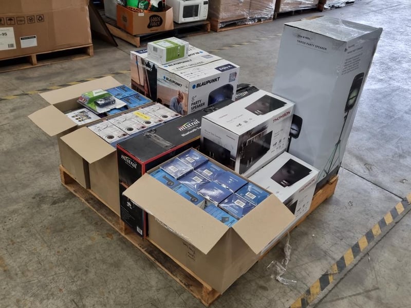 Assorted Bundle of Tech, Appliances and Homewares Blaupunkt 8" Party Speaker Nice and Nifty Tripod Party Speaker Lenovo Learning Portability Kit Thomson Vacuum Tube Speaker Thomson Gaming Speaker Set Mistral Guitar Amp Mistral Bluetooth Turntable Motion Detection Wifi Security Camera Easy Touch Portable Speaker Thomson 1080p Car Camera Vtech DECT Comms Bridge IC-360 Security Camera Vivitar Vs 126 Camera Uniden Home Phone DECT 1735 Vtech DECT corded deskset TP Link Mesh Wifi Extender