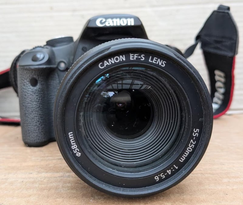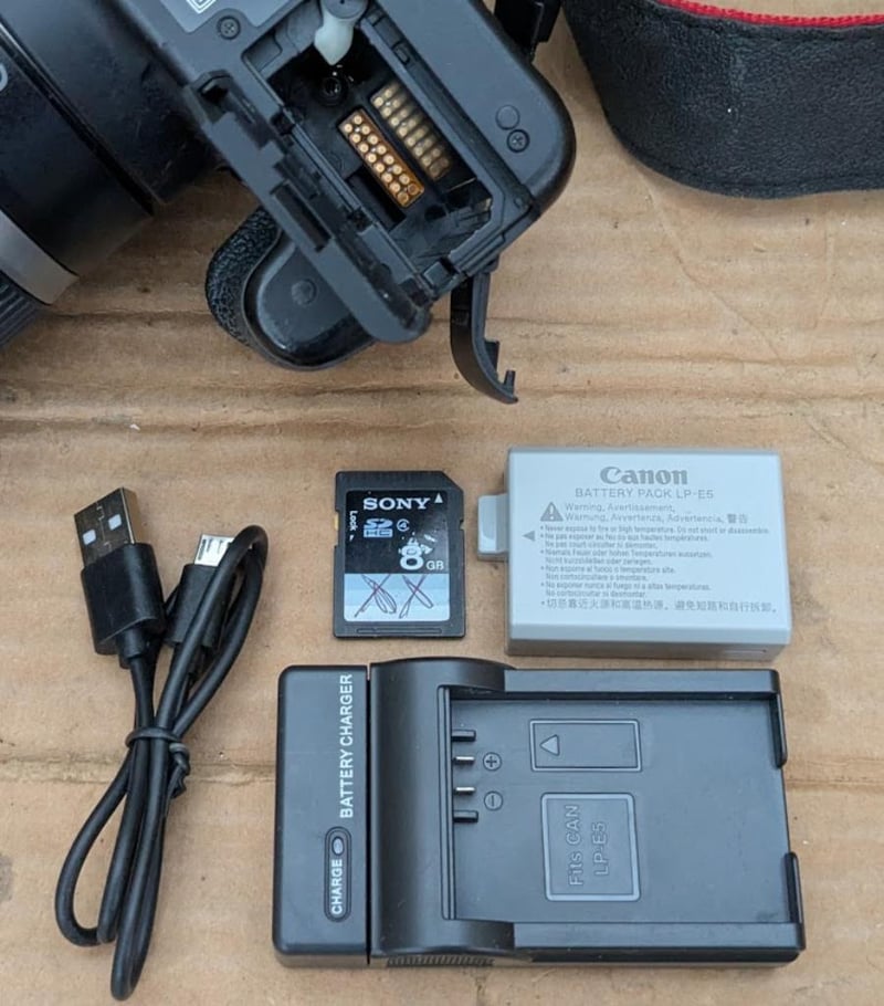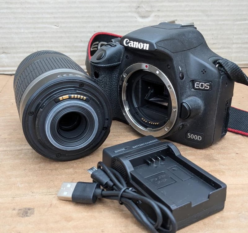 Canon Digital Camera EOS 500D DSLR, 55-250mm 1=4 - 5.6 lens, 8Gb card and charger