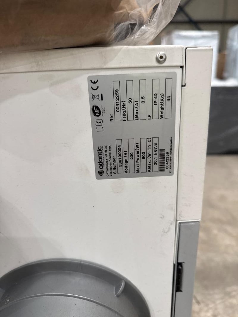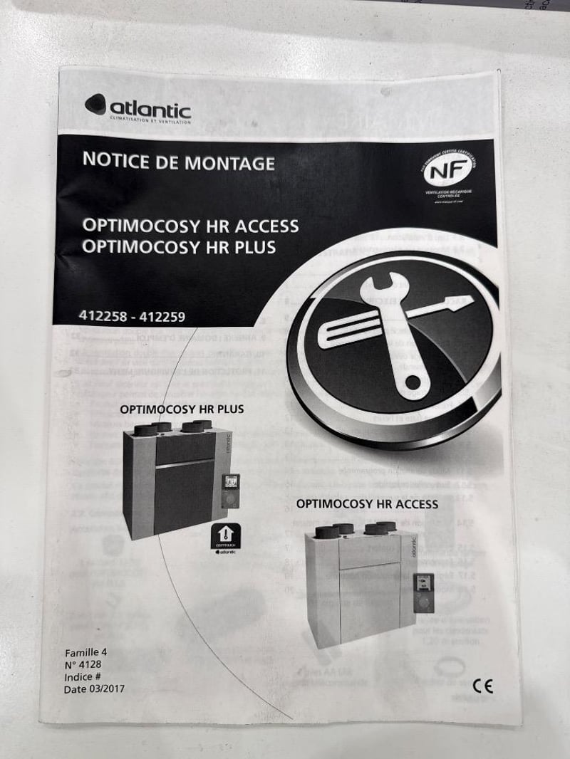 Ventilation System, Atlantic, OPTIMOCOSY HR PLUS, Serial- 536190004, includes manual and other accessories.