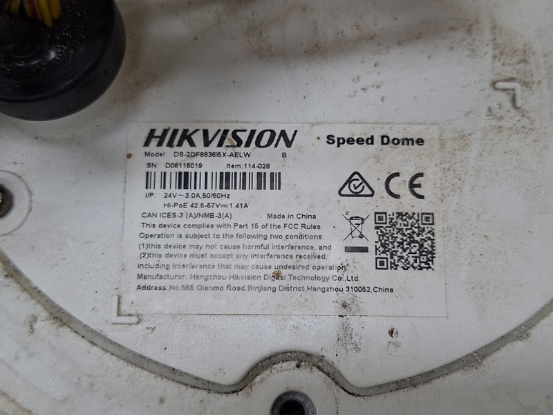 Hikvision, Speed Dome Camera, Model DS-2DF883615X-AELW, Serial No: D06116019