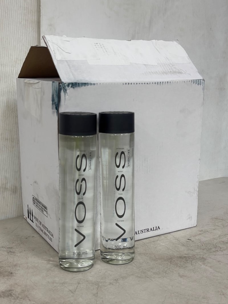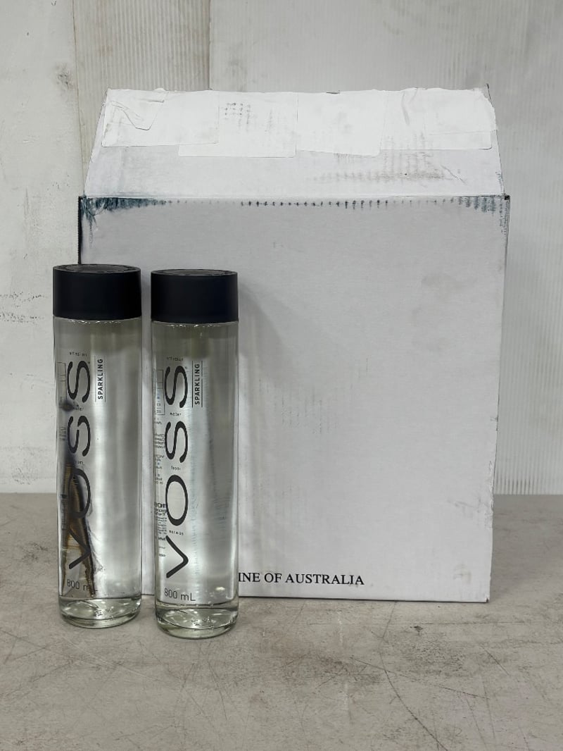 7x Voss Sparkling Water Bottles, 800ml eachSold as lot.