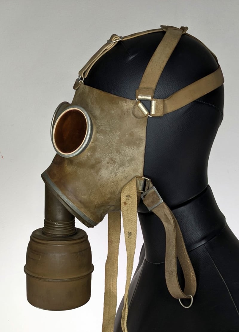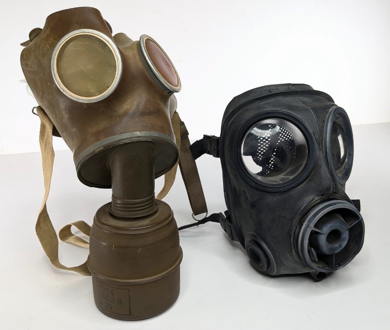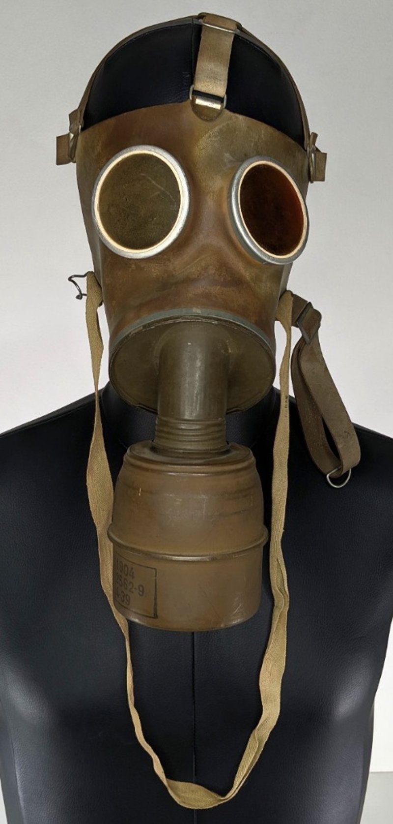WORLD WAR II GAS MASKS. QTY 2Item Size: Height: 5cm, Width: 5cm, Depth: 2cm, Weight: 1KgIncludes One World War Ii Style Full-Face Gas Mask With A Single Attached Filter, The Filter Canister Features Stamps Indicating "1904", "2562-9", And "4-39" And, One Avon S10 Nbc RespiratorCondition: Good - Refer To ImagesF3991145+10