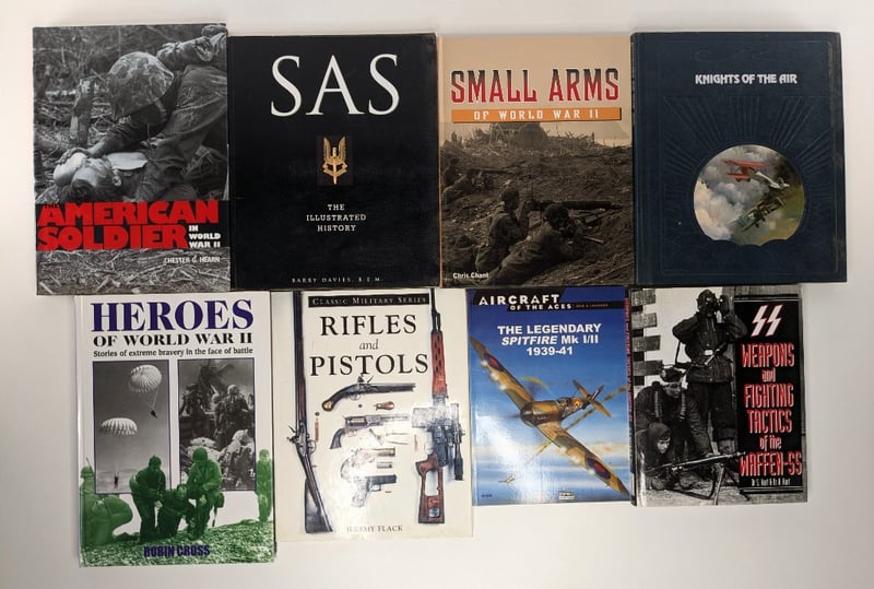Includes; Images Of War - The Real Story Of Ww2 - Complete Set Of 52 Issues. D-Day Dawn Of Heroes By Nigel Cawthorne Published 2004. The American Soldier In Ww2 By Chester G. Hearne. Published 2000. This Is Sas By Tony Geraghty, Published 1982. Knights Of The Air, Published 1980. An Incomplete History Of Ww1 By Edwin Kiester Jr, Published 2007, Etc.
