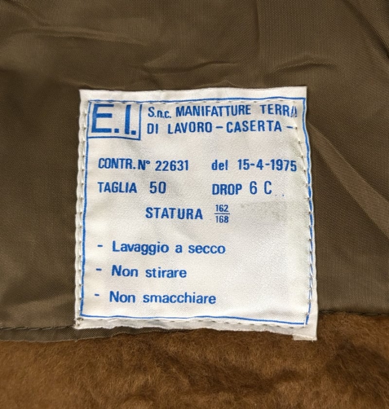 Manufactured By S.N.C Manifatture Terra Di Lavora, Italian Size 50, Contract Number 22631, Dated April 15, 1975