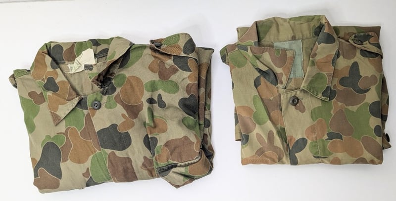 1989 MILITARY CORPERAL CAMO SHIRT AND 1992 MILITARY CAMO SHIRT.
