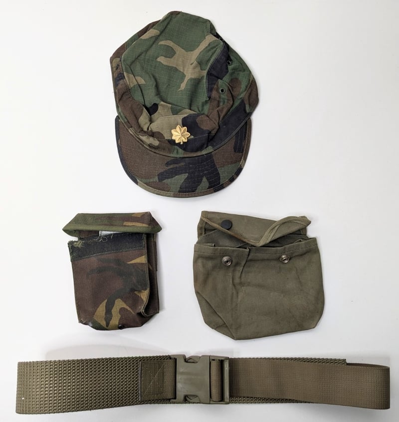 ASSORTED MILITARY EQUPTMENT/ GEAR.Item Size: Height: 2cm, Width: 100cm, Depth: 6cm, Weight: 1KgIncludes; 2 Dark Green Pouches, A Hot Weather Cap Size 7 3/8 And A Belt - Fastex Nz-Model Sr2Condition: Good - Refer To ImagesFC991145+66