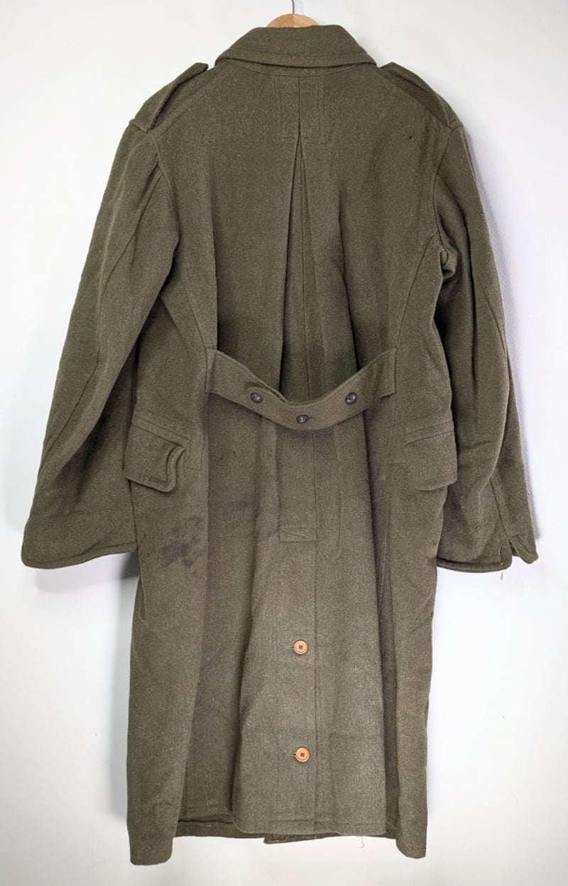 1940 LONG WOOL MILITARY JACKETItem Size: Height: 115cm, Width: 60cm, Depth: 4cm, Weight: 1KgJ.Barter, Regiment No Vx21423, Manufactured By Golden Rose Clothing Pty. Ltd.Condition: Good - Refer To ImagesFC991145+70