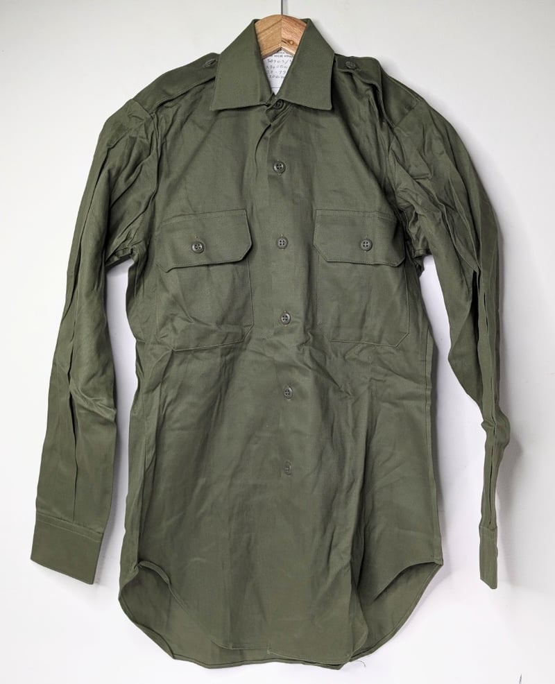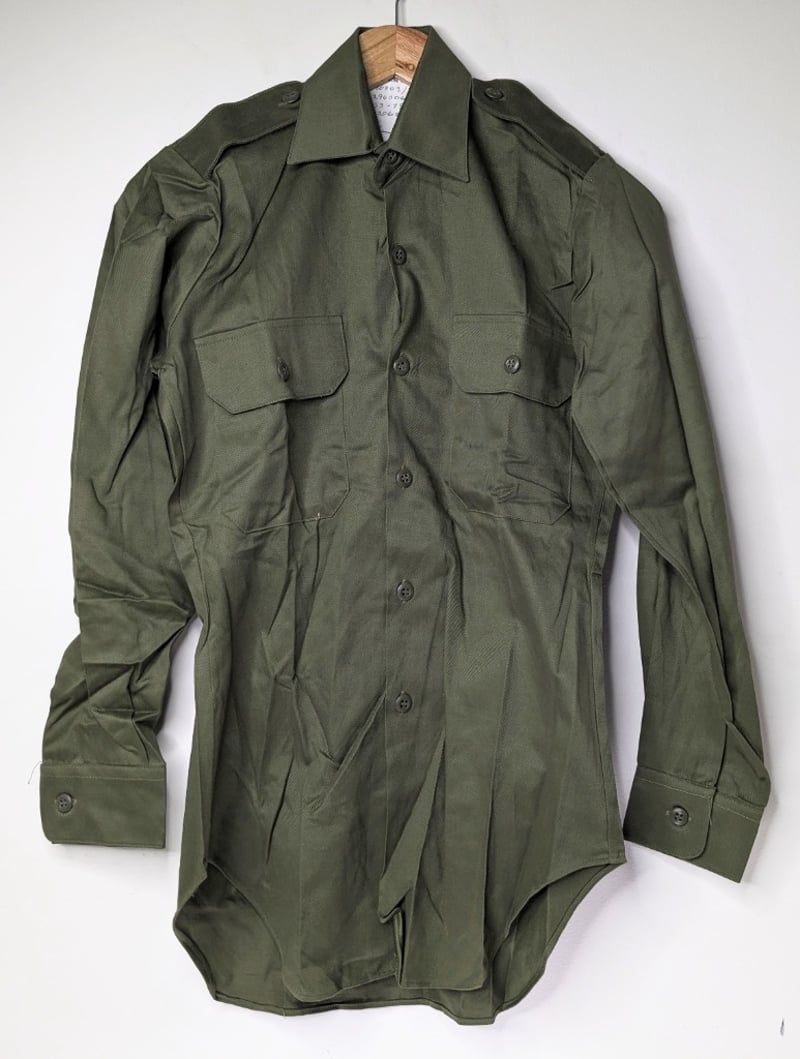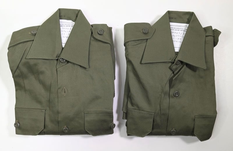 1984 MILITARY SHIRTS. QTY 2Item Size: Height: 80cm, Width: 40cm, Depth: 2cm, Weight: 1KgDark Green Long Sleeve Button Up Shirts, Size 33/79Condition: Good - Refer To ImagesFC991145+74