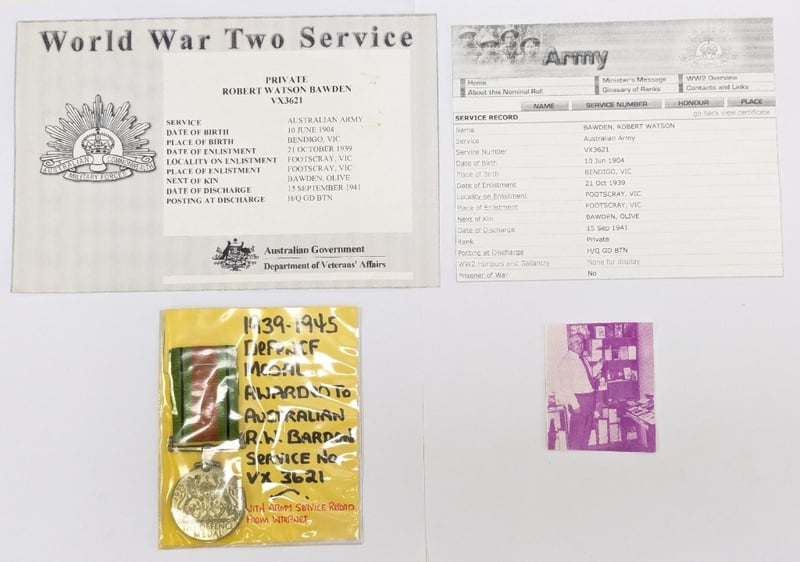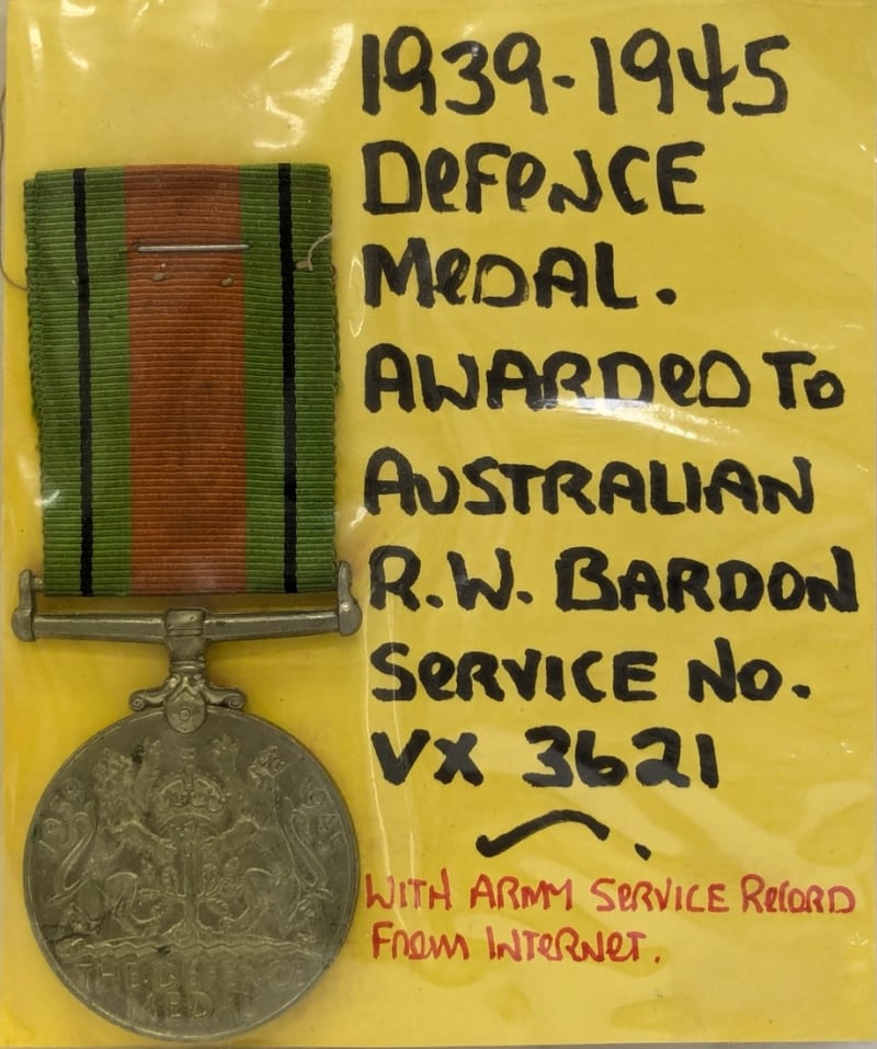 MEDAL - DEFENCE 1939-1945 AWARDED TO AUSTRALIAN R.W. BARDON, SERVICES NO. VX3621