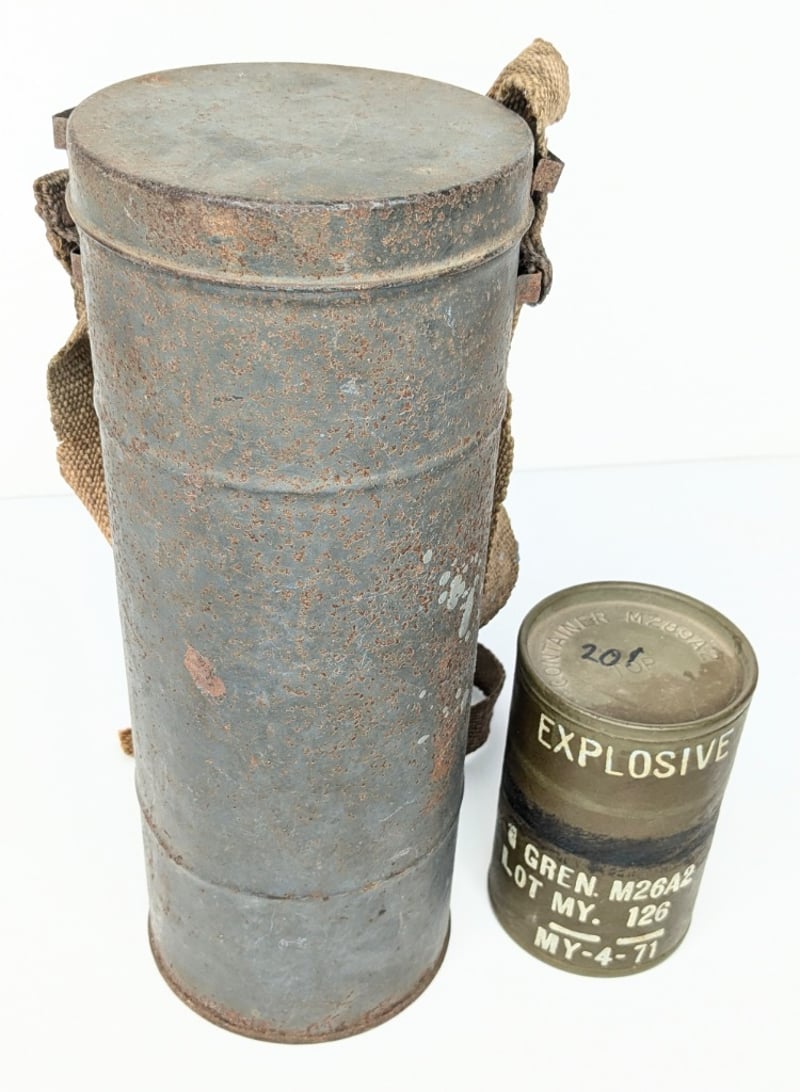MILITARY GAS MASK CANISTER & GRENADE CONTAINER M2802 FOR M26A2 GRENADES 1971