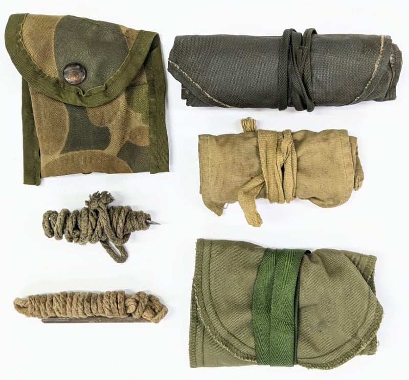 Lee Enfield 303 Pull Through, Misc - Slr Pull Through, Australian Army Sewing Kit 1952 Tan Canvas, Accessory Kit Cleaning 7.62Mm Rifle Mk 1 With 3 Of 4 Pieces And, Alice Pouch Used For Carrying A Compass Or First Aid Dressing.