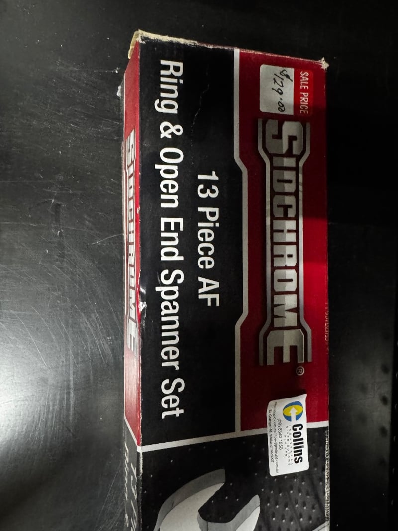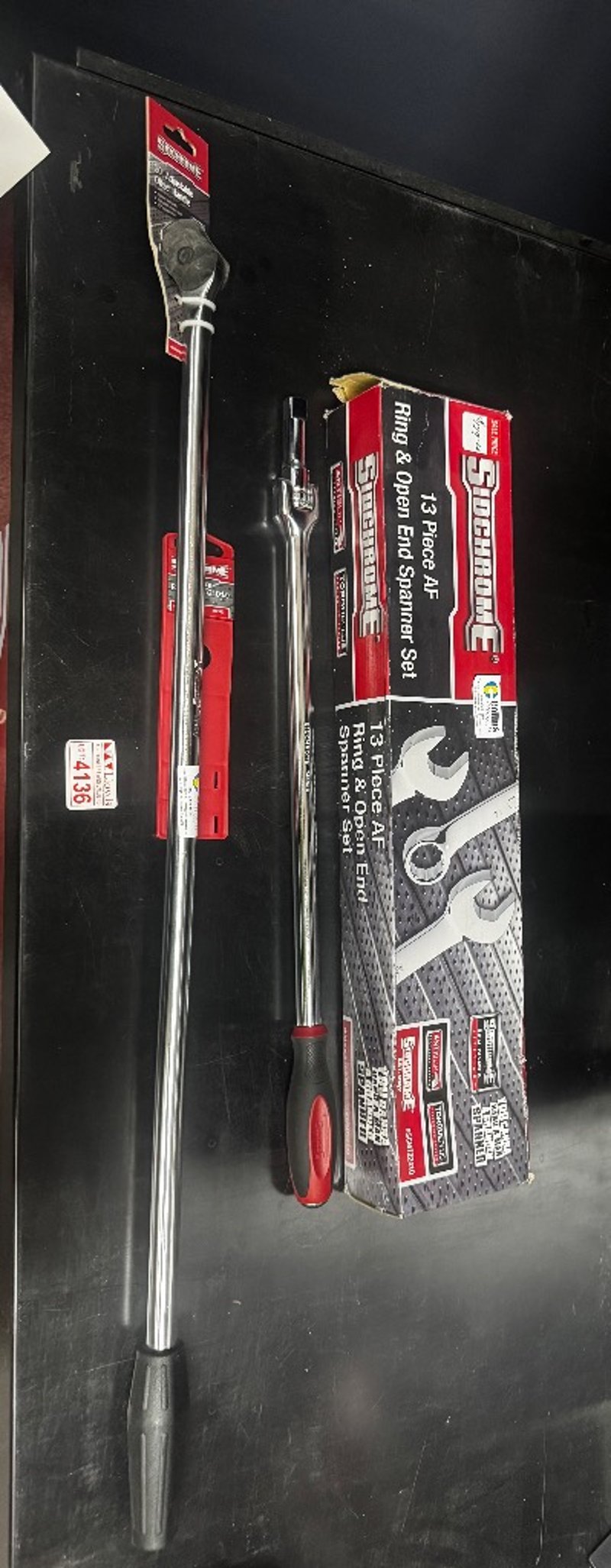 Assorted Sidchrome Tools, including Breaker Bar and 13 Piece A/F Ring and Open End Spanner Set