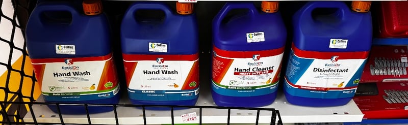Assorted Excision products, including Hand wash, Hand Cleaner and Disinfectant, Bulk 5L size bottles