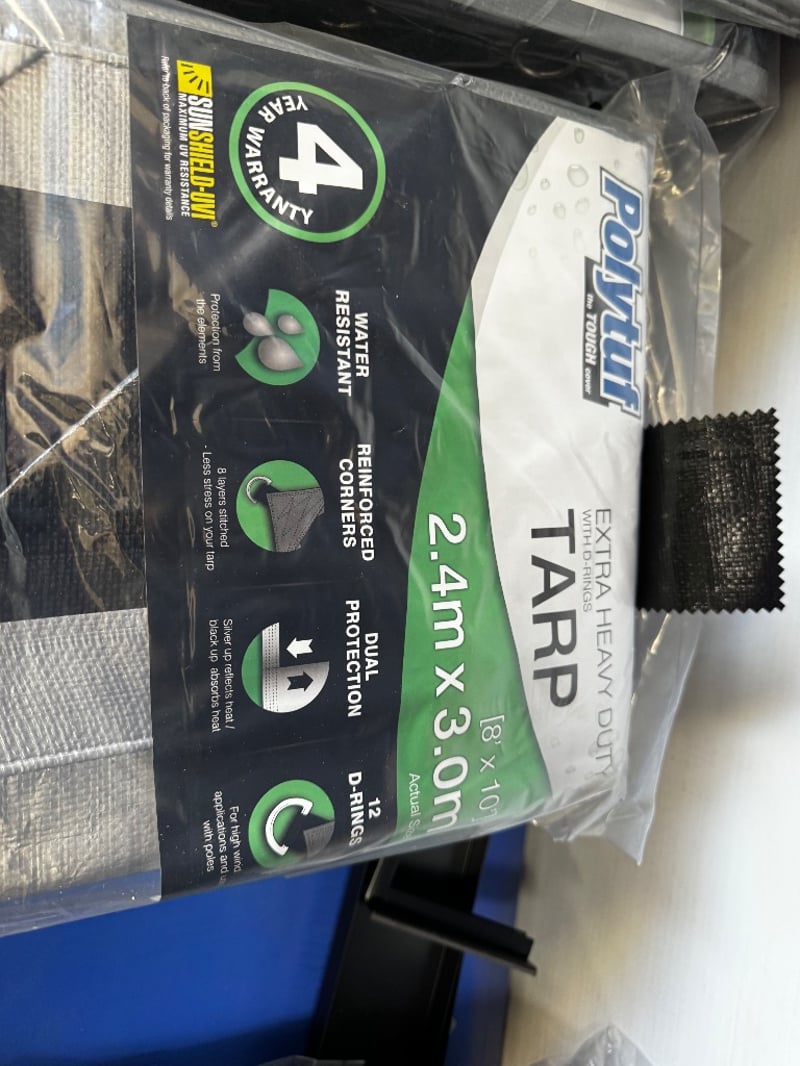 Heavy Duty Tarps, sizes include 2.4m x 3m
