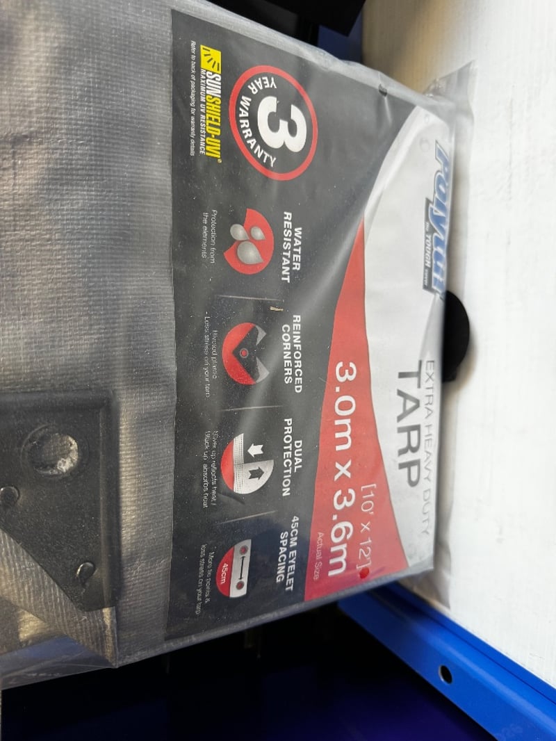 Heavy Duty Tarps, sizes include 3m x 3.6m