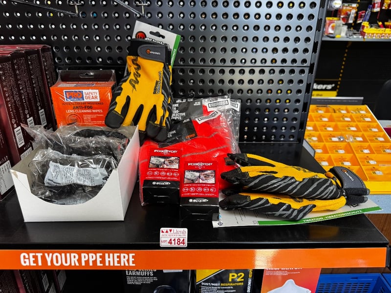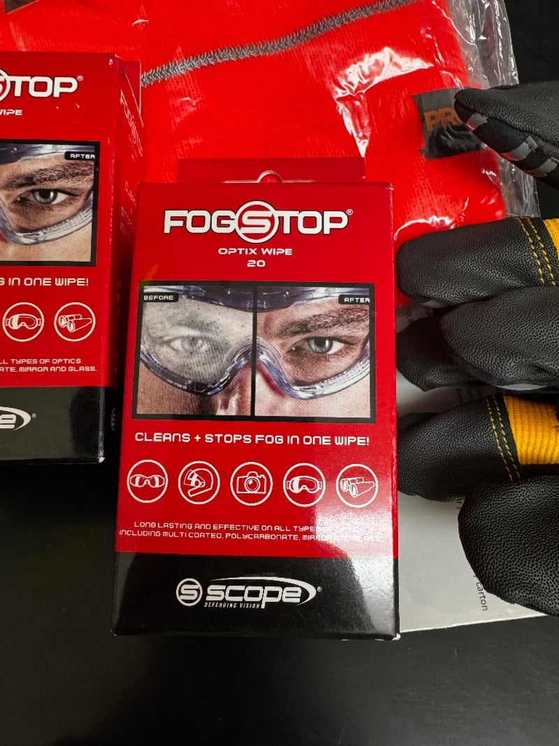 Assorted Safety Equipment, including Safety Gloves and Glasses Cleaning Wipes