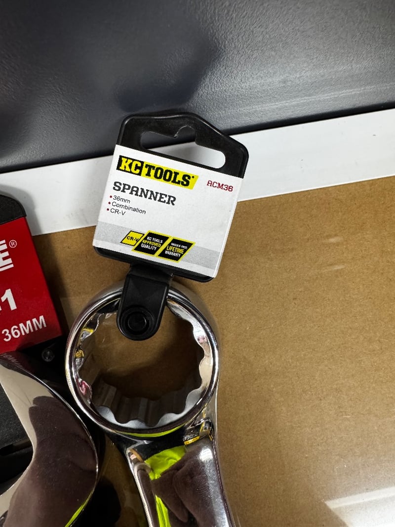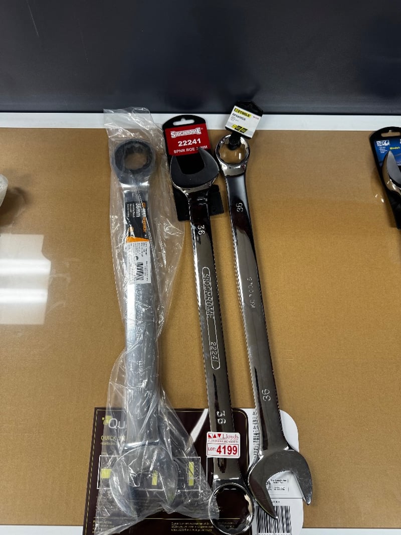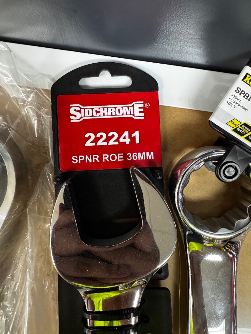 Assorted Ring and Open End Spanners, Brands Include KC Tools and Sidchrome, Includes one Ratcheting style