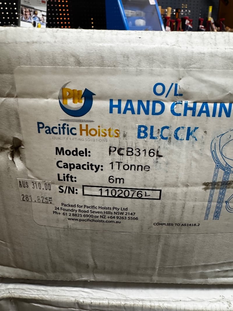 O/L Hand Chain Block, Model PCB316L, 1 Tonne Capacity, 6m Lift, Quantity 2Sold As Lot