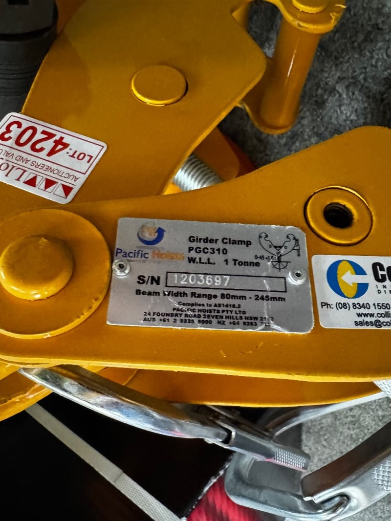 Girder Clamp PGC310, W.L.L 1 Tonne, Beam Width Range 80mm- 245mm, and moreSold As Lot