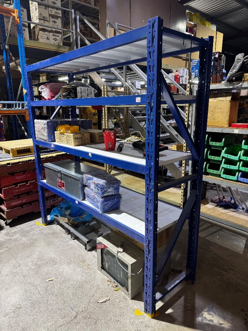Blue Metal Racking/Shelving, 4 ShelfNote: Shelves only, items not included