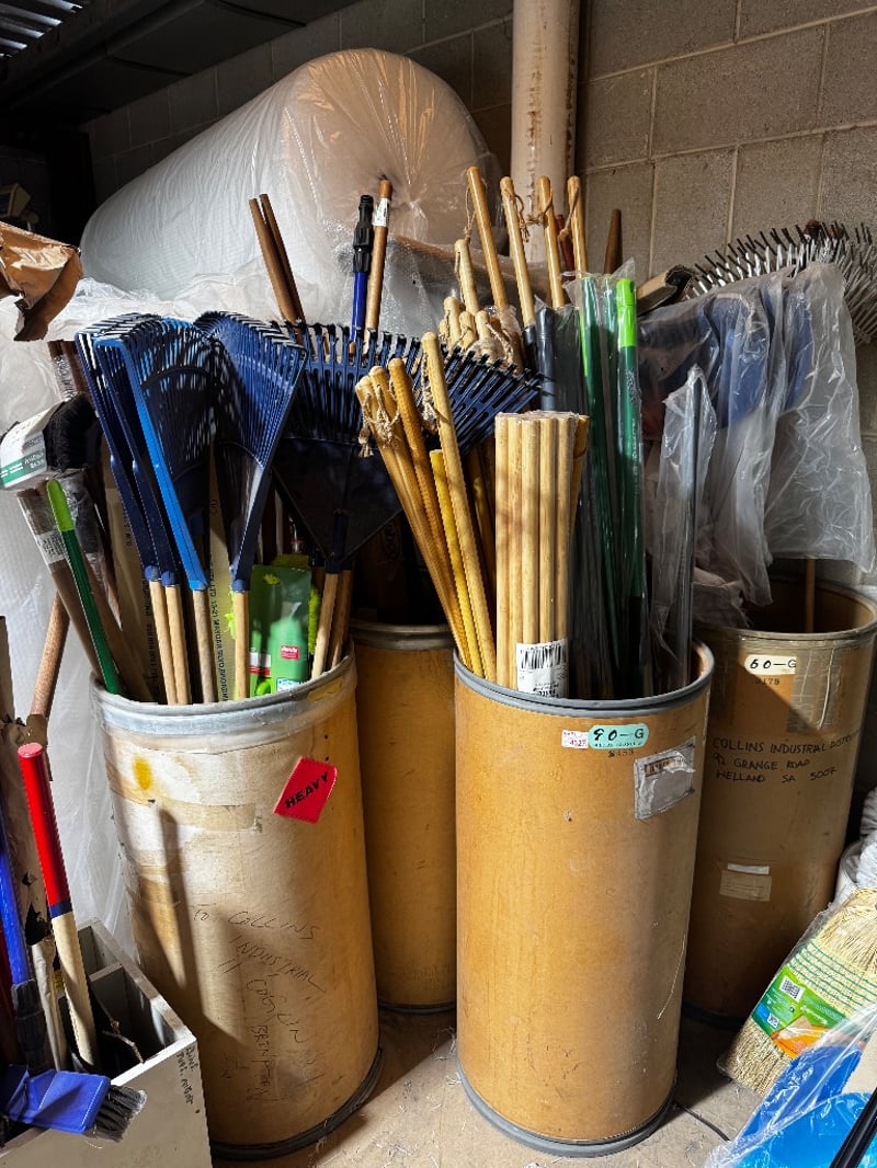 Assorted Home and Garden Equipment, includes Rakes, Superswish Mop Head, and moreSold As Lot