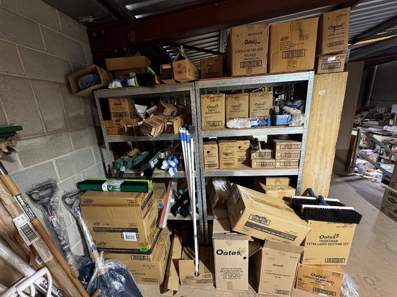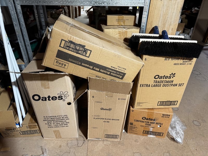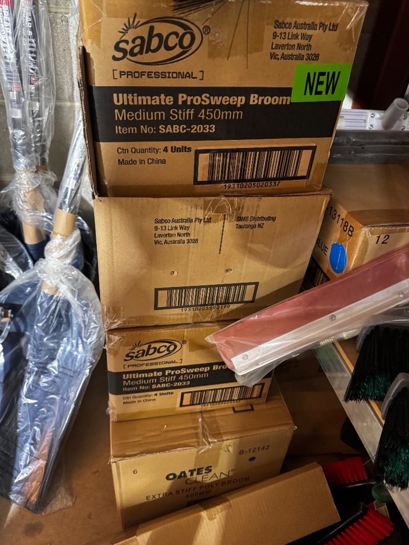 Assorted Cleaning Equipment, includes Broom and Mop Heads, Dustpan Sets and moreSold As Lot
