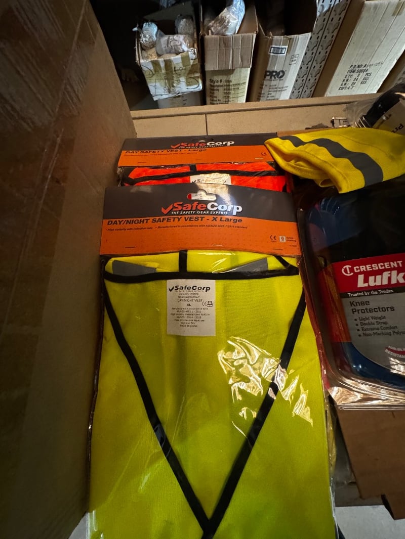 Assorted Safety Equipment, includes Hi-Vis Vests, Knee Pads and moreSold As Lot