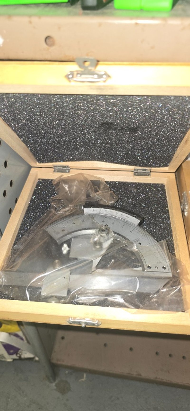 Assorted Measuring Equipment includes Bevel Protractor, Digital Micrometer and moreSold As Lot