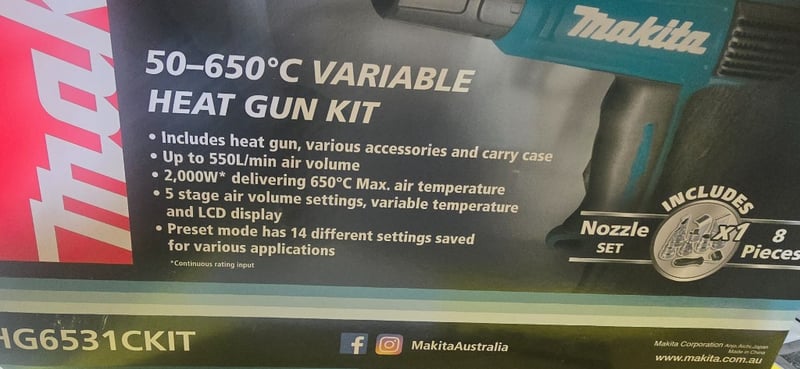 Makita Heat Gun Kit, Variable 50-650 C, Model HG6531CKIT, 2000w