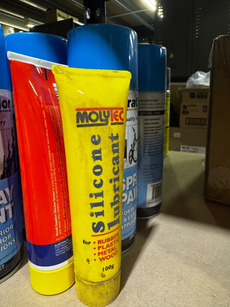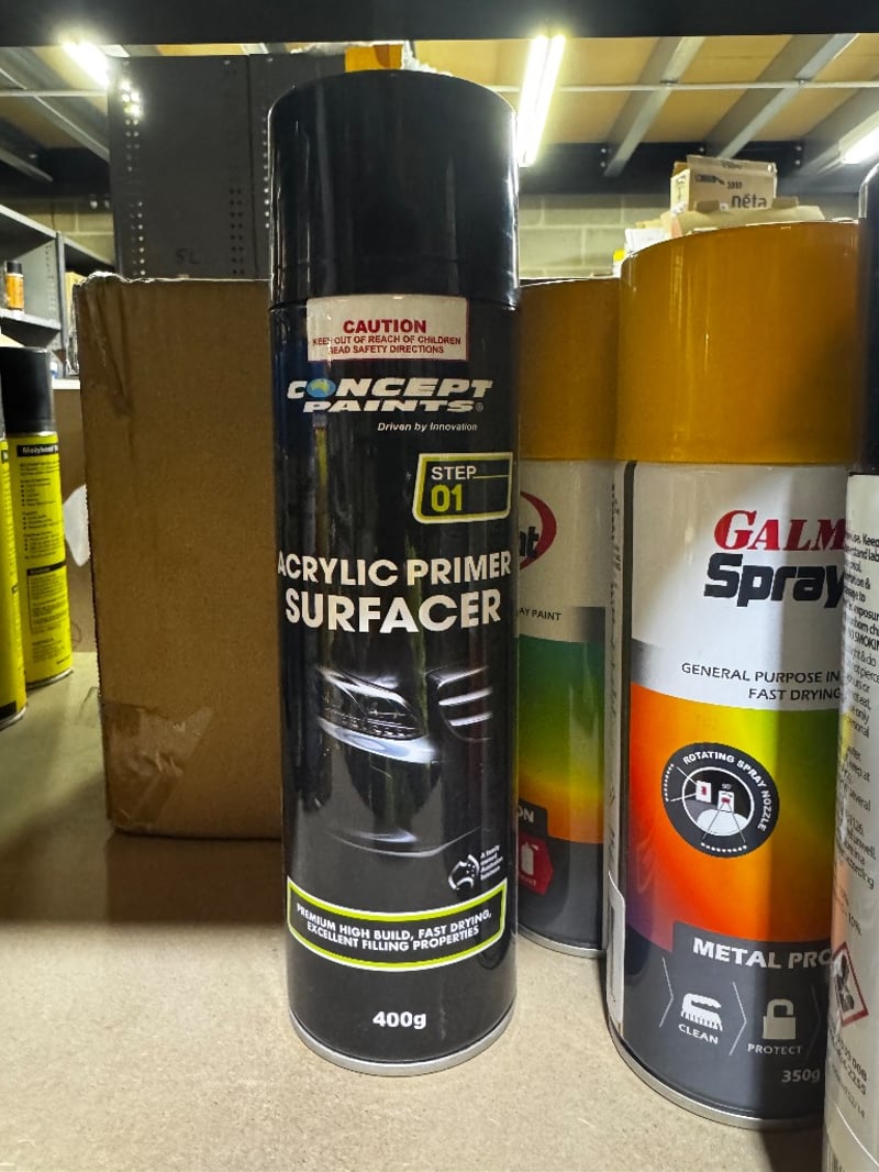 Assorted items including Spray Paint, Acrylic Surface Primer and Silicone Lubricant