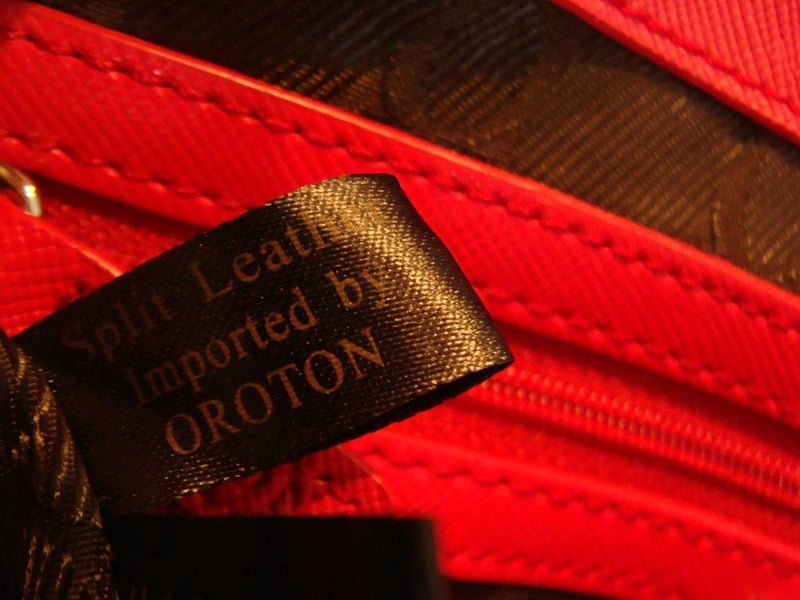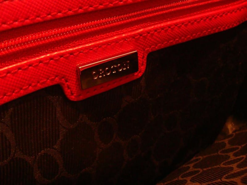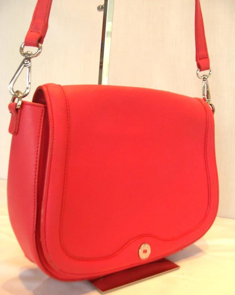 OROTON LEATHER HANDBAG WITH CLASSIC O INTERIOR.