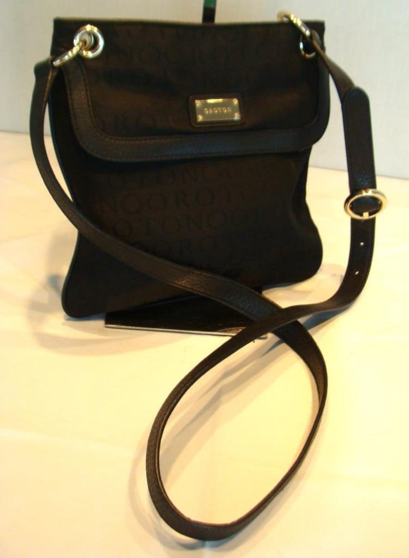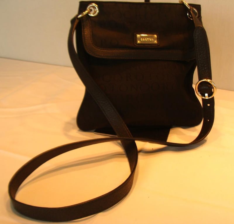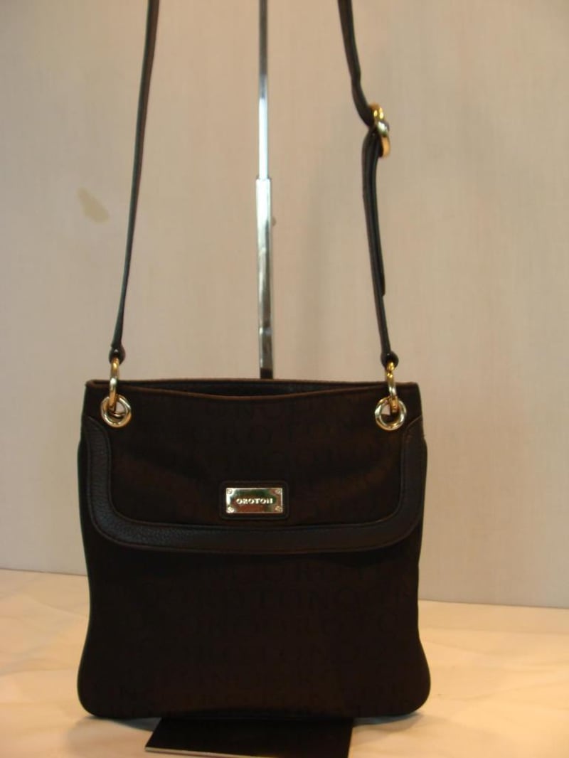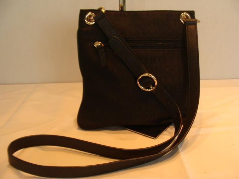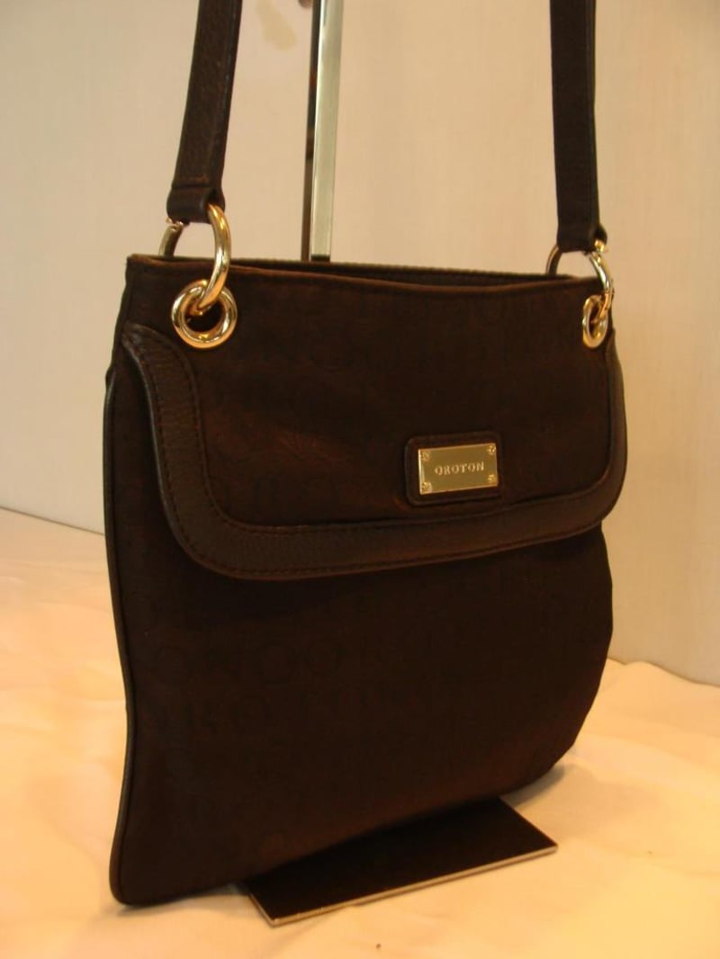 OROTON LEATHER & CANVAS SATCHEL HANDBAG WITH CLASSIC O INTERIOR.