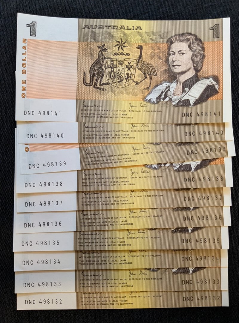 TEN CONSECUTIVE EF+ 1982 JOHNSTON/STONE SIGNED ONE DOLLAR NOTESCondition: Ef584436+15