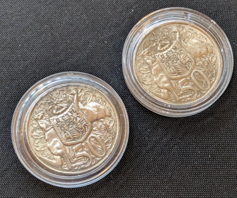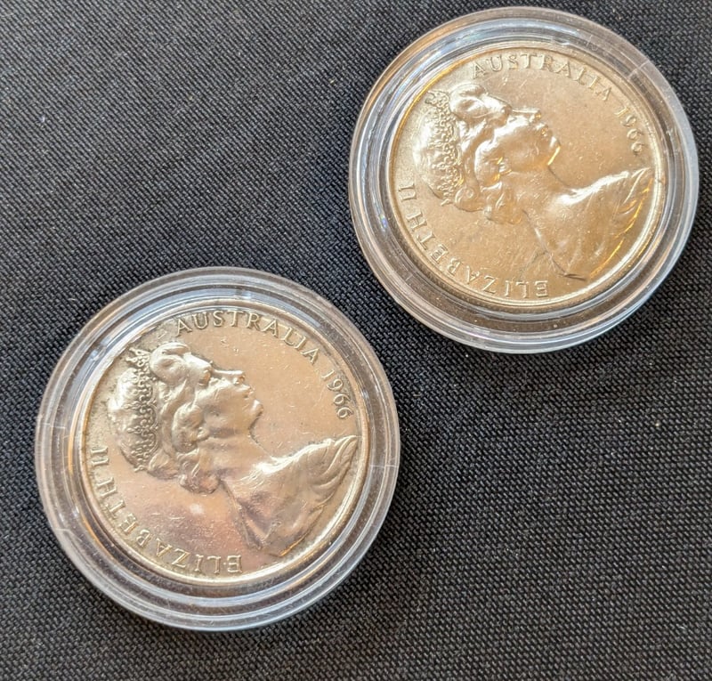 TWO 1966 AUSTRALIAN FIFTY CENT SILVER COINS