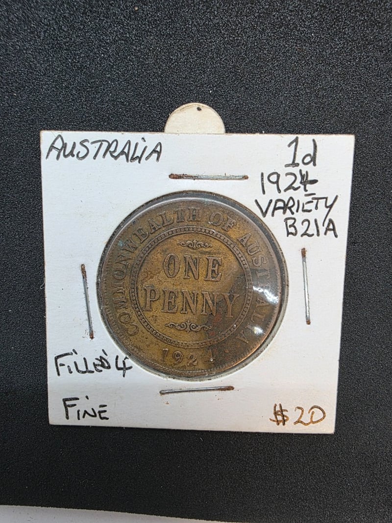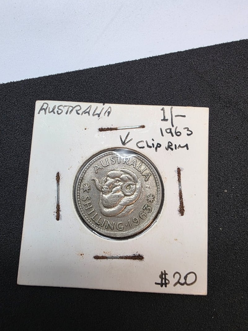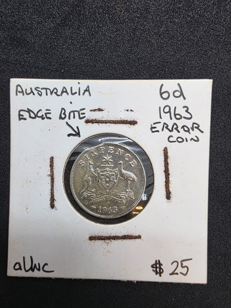 COLLECTION OF AUSTRALIAN ERROR COINS.Includes:1963 Australian Sixpence Coin With "Edge Bite" Error1924 Australian One Penny With "Filled In 4" Error1924 Australian One Penny With "Filled In 4" Error1963 Australian Shilling With A "Clip Rim" ErrorCondition: Fine585067+6