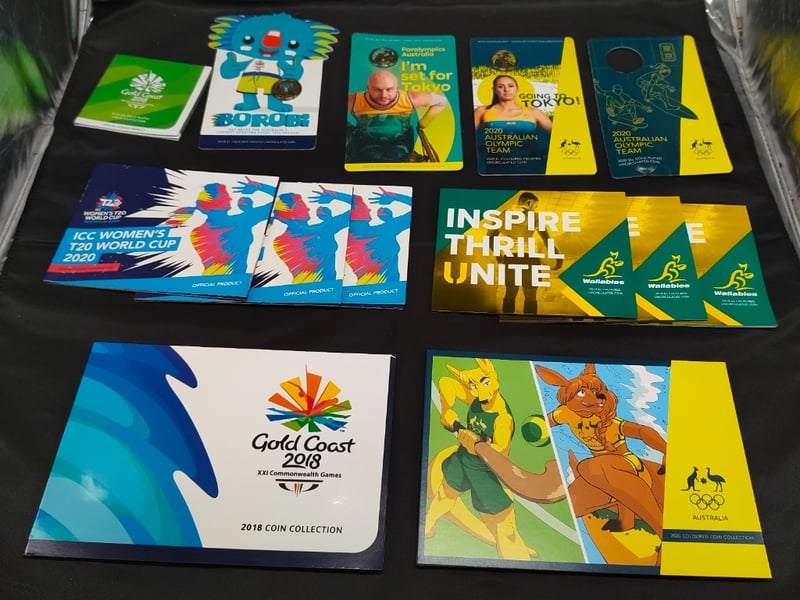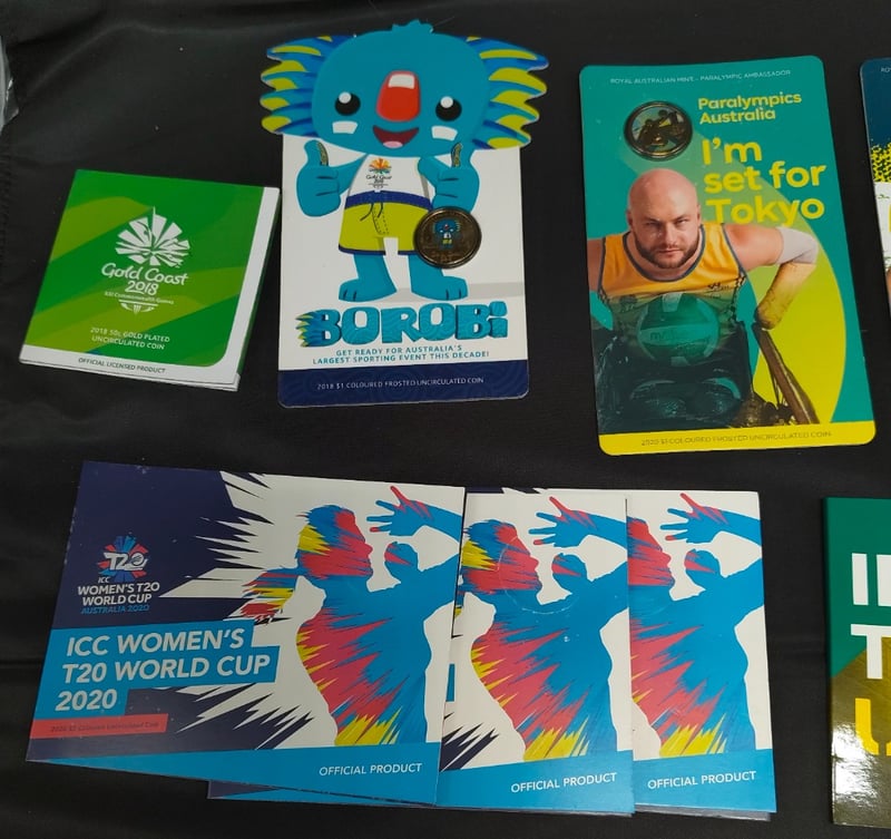 COLLECTION OF AUSTRALIAN SPORTING COLLECTOR'S COINSCollection Includes:1X 2020 Olympics Coloured Coins1X 2018 Commonwealth Games Coins3X 2019 Wallabies $2 Coloured Uncirculated Coins3X 2020 Icc Women'S T20 World Cup Coloured Coins1X 2018 Gold Coast Commonwealth Games 50C Gold Coins3X 2020 Australian Olympic Team Coins1X 2018 Borobi Gold Coast Commonwealth Games $1 CoinCondition: FineACACIA RIDGE585067+18