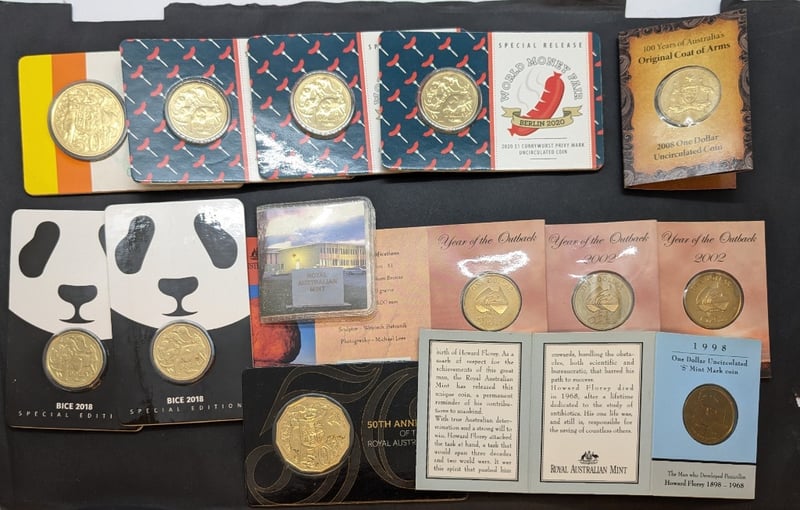 COLLECTION OF ROYAL AUSTRALIAN MINT COINSIncludes Three 2002 Year Of The Outback One Dollar, 1998 Unc S Mint Mark One Dollar, 2016 50Th Anniversary Of Decimal Currency Fifty Cent, Etc585067+20