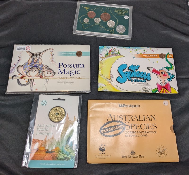 COLLECTION OF AUSTRALIAN COINSIncludes Limited Edition 2019 Mr Squiggle And Friends, 2023 Australian World Heritage Five Dollar, Limited Edition 2017 Australian Possum Magic One Cent, Etc585067+24