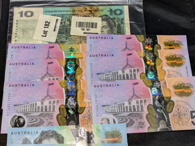 COLLECTION OF BANK NOTESIncludes Consecutive Australian Five Dollar Notes (272-276), Consecutive Ten Dollar Notes (363-367), Etc585067+32
