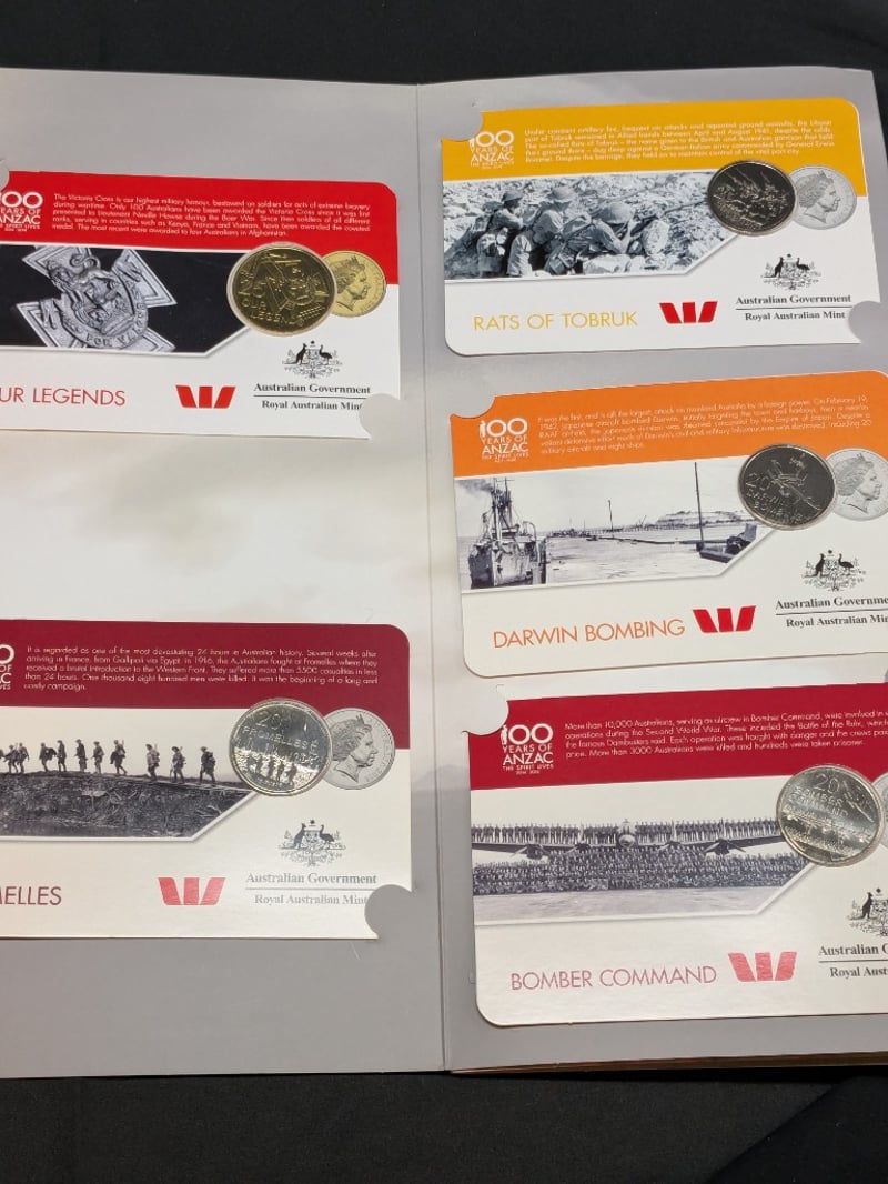 2016 ROYAL AUSTRALIAN MINT ANZAC TO AFGHANISTAN COMPLETED COIN COLLECTION, 2018 ROYAL AUSTRALIAN MINT ANZAC SPIRIT COIN COLLECTION FOLDER WITH UNITED COIN585067+35