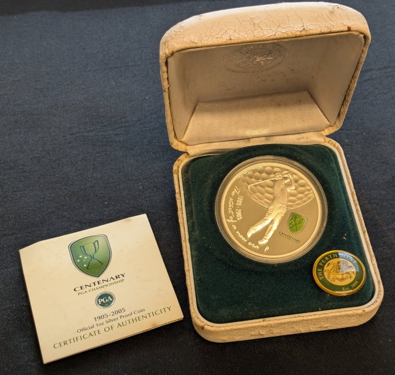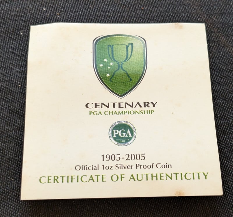 THE PERTH MINT LIMITED EDITION PGA 1905-2005 OFFICIAL 1OZ SILVER PROOF COINEdition: 3025/ 7500Condition: Aunc585067+40