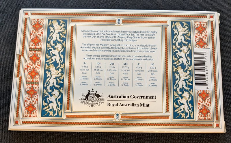 ROYAL AUSTRALIAN MINT 2024 SIX-COIN UNCIRCULATED YEAR SET 'HIS MAJESTY KING CHARLES III'Condition: Unc585067+41