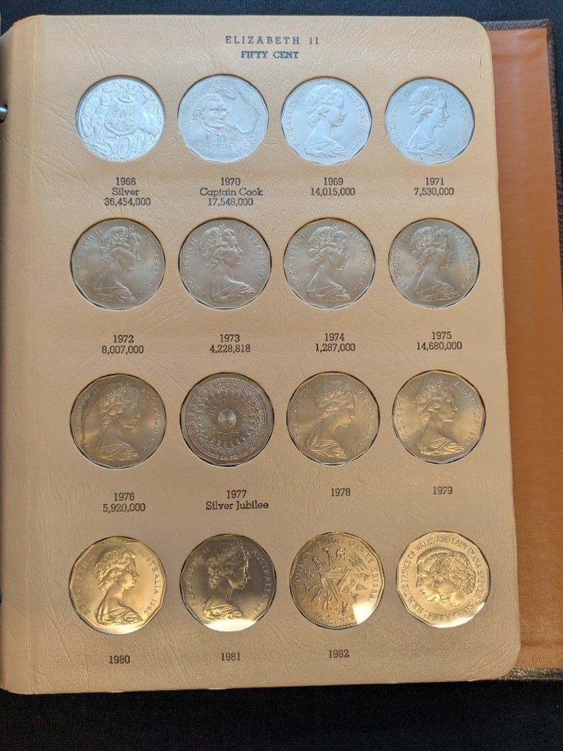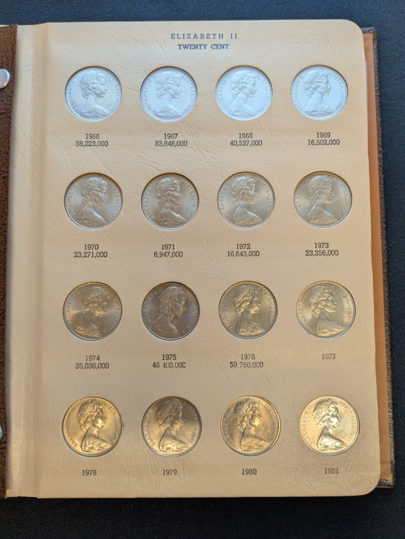 1966-1982 AUSTRALIAN TWENTY AND FIFTY CENTS COLLECTORS FOLDER585067+47