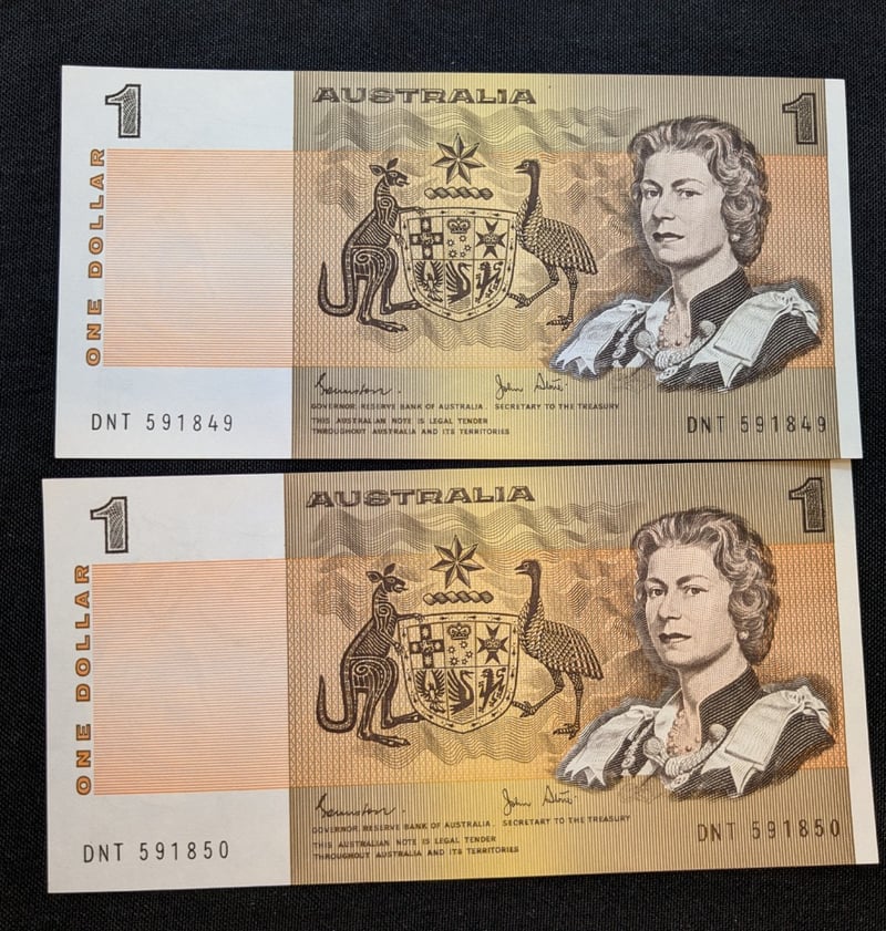 Two Consecutive One Dollar Bank Notes Includes Johnston/Stone Signed, Dnt 591850 And Dnt 591849
