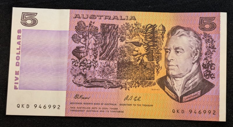 Five Dollar Bank Note Includes Fraser/ Cole Signed, Qkd 946992 Prefix